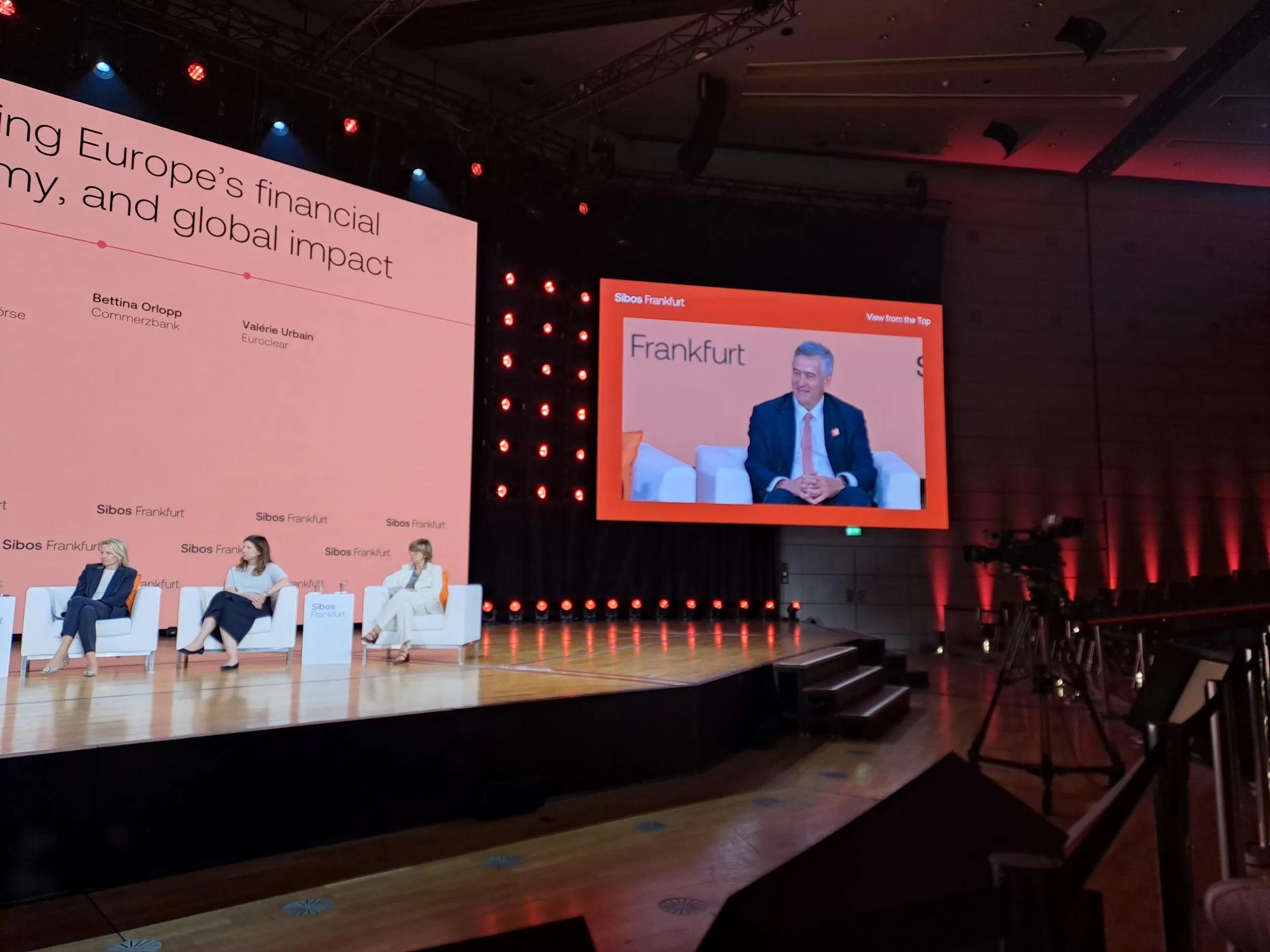 Other panellists giving their ‘view from the top’ included European Central Bank (ECB) executive board member Piero Cipollone and Euroclear CEO Valerie Urbain.